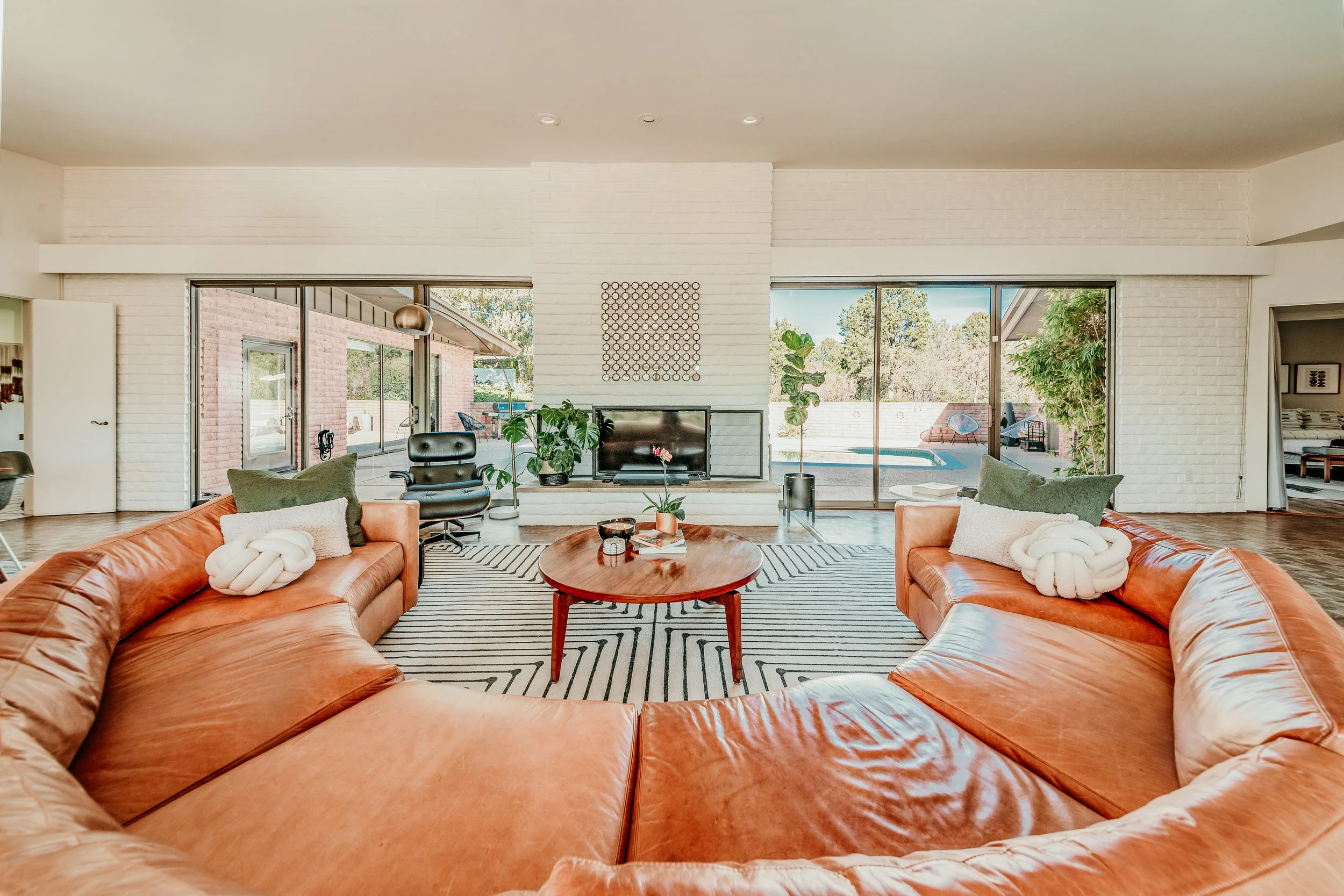 Welcome to the Eichler House, Thousand Oaks. Mid century modern gem with pool, jacuzzi, fireplace and built in BBQ. Perfect for entertaining as well as quiet get away for large families, wellness retreats or group of friends. Close to hiking trails, shopping centers and 30 minute drive to Malibu beach. Fully remodeled with modern amenities. Features an atrium and open floor plan with floor-to-ceiling windows to create a seamless connection of indoors to outdoors. The house backs to open space for ultimate privacy!