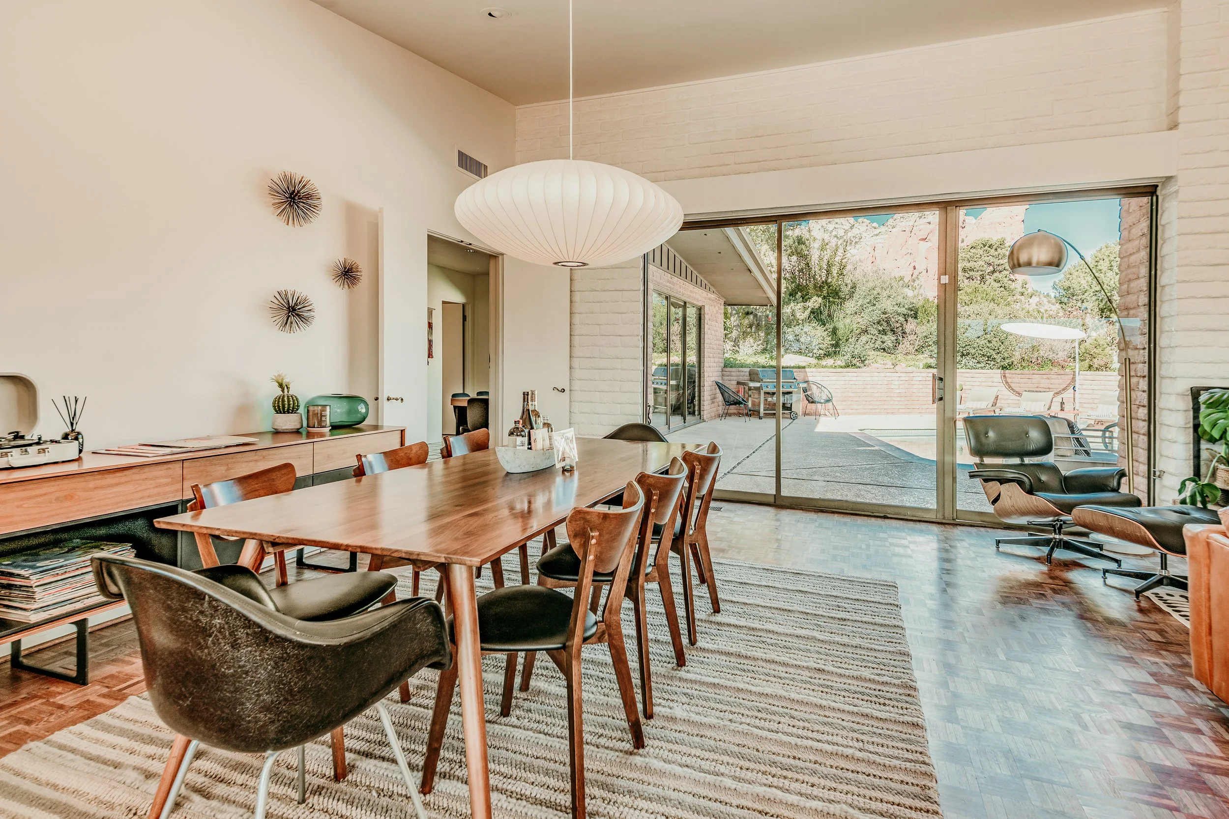 Step into the enchanting world of Halona House, nestled in West Sedona's embrace. Surrender to the panorama of RED ROCK mountain vistas that envelop you. Immerse yourself in the allure of the sparkling pool and the embrace of a brand-new Jacuzzi. This spacious mid-century modern sanctuary, a masterpiece by a local architect, beckons with vintage furnishings and a unique charm. Discover the indulgence of 3 extra-large rooms, each a haven of comfort. The symphony of indoor-outdoor living plays on, as sliding glass doors connect you with nature from every corner. Venture out - trails, culinary delights, and shops are a leisurely stroll away, while serenity reigns in your quiet oasis. Welcome to Halona House, where Sedona's magic meets tranquility.